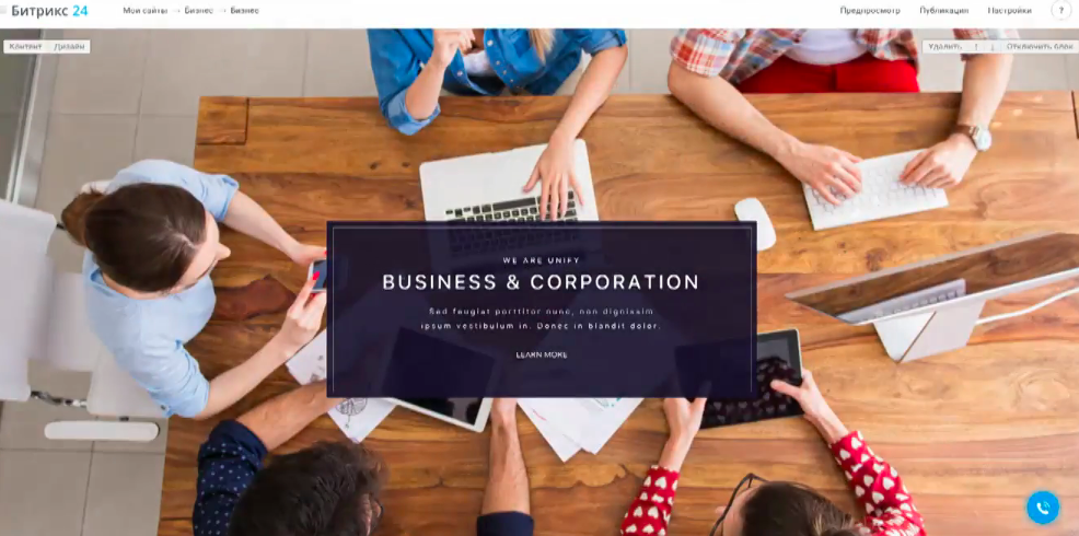 Оно встроено в Битрикс24, будет сразу интегрировано с Открытыми линиями, поддерживает CRM-формы и позволяет дешево и сердито сделать сайт, если у вас есть Битрикс24. Даже в бесплатной версии.