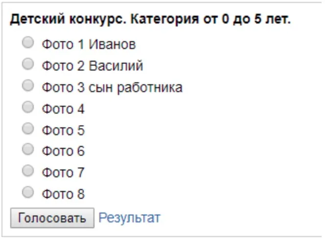 Как добавить изображения в качестве ответов на вопрос? Зачем это понадобилось? Всё очень просто. У заказчика устраиваются конкурсы на лучшие детские рисунки. Рисунков много, а выбрать можно только один. При решении задачи нам частично помог наш же код из решения Радио-кнопок. Это было забавно и очень красиво вписывалось в функционал и дизайн.