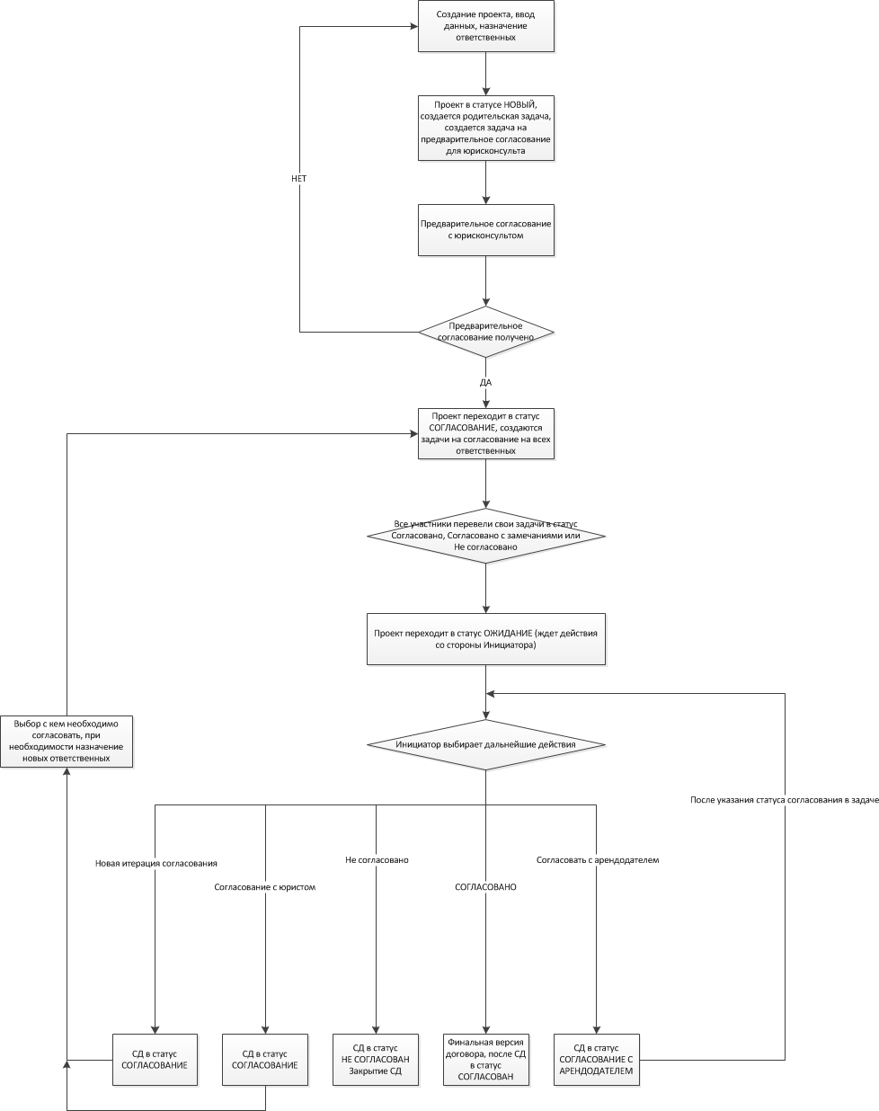 Как мы видим решение этой ситуации.Логика бизнес-процесса согласования договоров