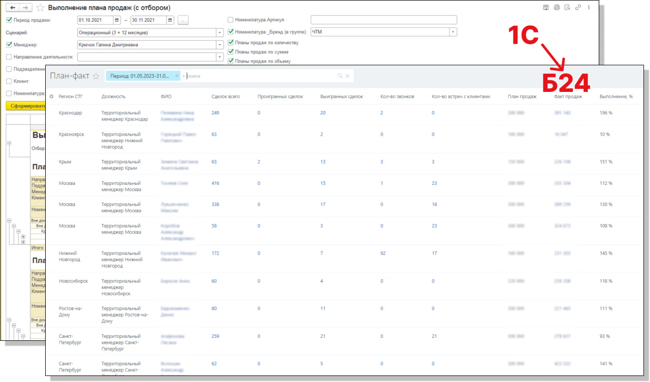 с “1С:ERP. Управление холдингом”. Интеграция дала возможность сотрудникам, работающим с Б24, не обращаться к 1С:ERP напрямую. Актуальное состояние данных в Б24 поддерживается их регулярной выгрузкой из ERP. Эта интеграция была самой трудоемкой.