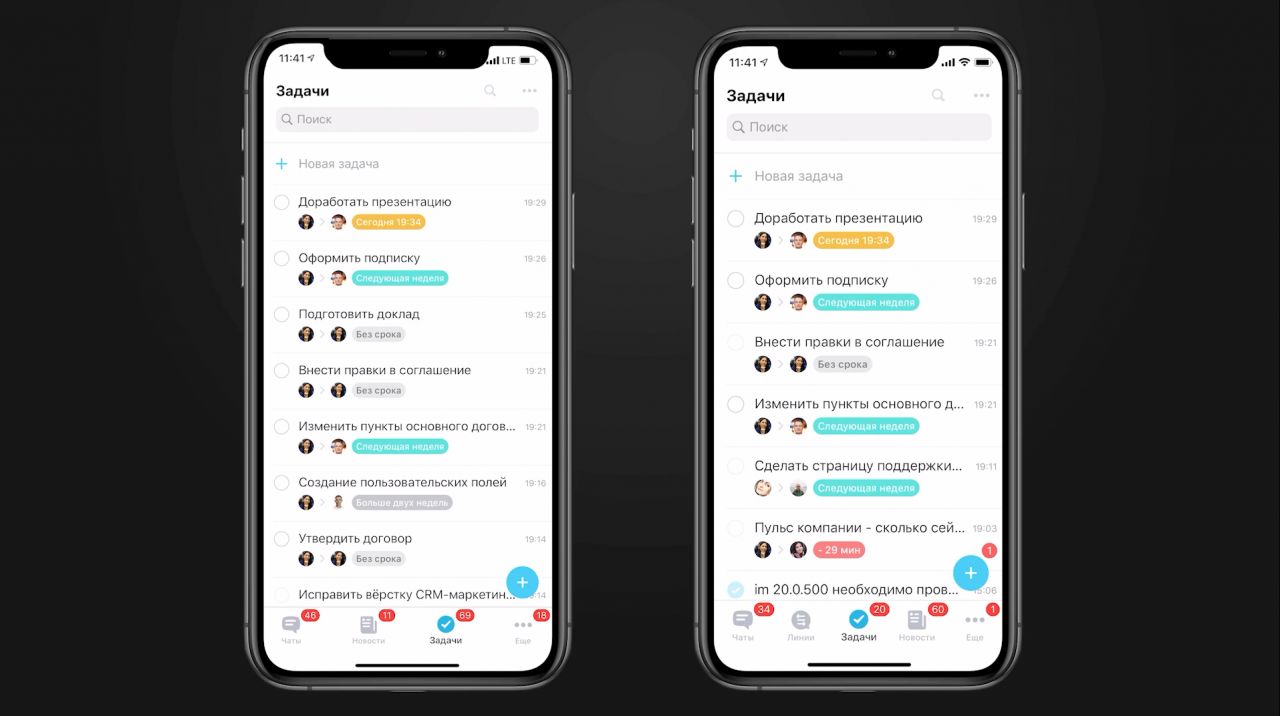 Отдельно стоит отметить возможность работать со смартфона с задачами, как с чатами. Их можно обсуждать, отслеживать статус, контролировать изменения, оставлять комментарии и подключать сотрудников, а Битрикс24 всегда напомнит о сроках.