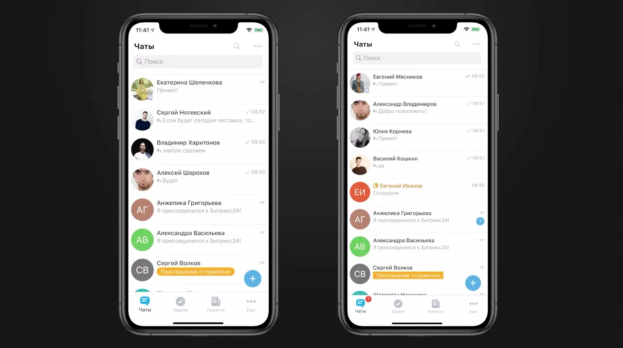 1С-Битрикс переработали саму концепцию мобильного приложения: теперь это не просто мессенджер с полезными функциями — это полноценная CRM-система у вас в кармане, которая помогает эффективно управлять командой, нанимать и увольнять сотрудников, общаться в с коллегами в групповом видеочате.