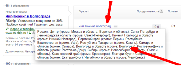 - Использование неправильных регионов (нет связи фразы, объявления и региона):