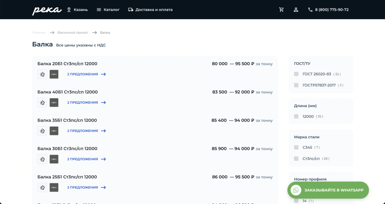 Амбициозная цель — сделать доступной покупку балки всех стандартных и некоторых уникальных профилей в каждом субъекте РФ.