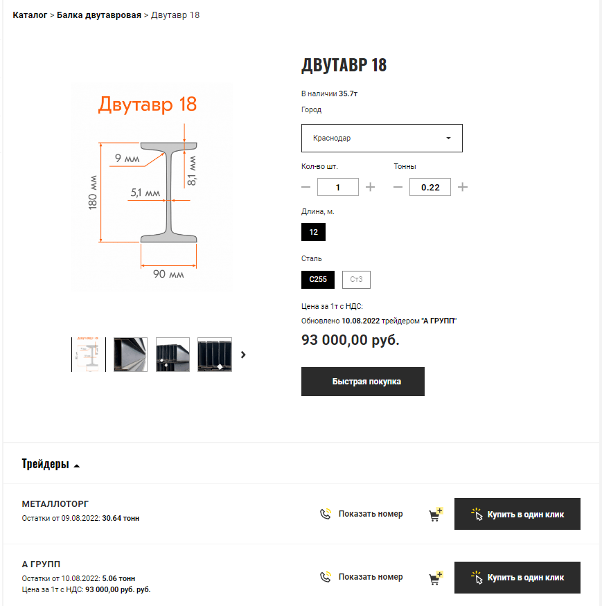 Для наглядности разберем схему на примере одного из наших проектов — steelradar.ru — нишевой маркетплейс поиска и подбора фасонного проката международной металлургической горнодобывающей компании Евраз.