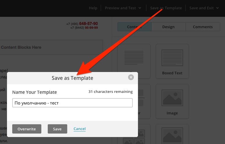 После того как вы сконструировали свой шаблон письма — сохраните его.