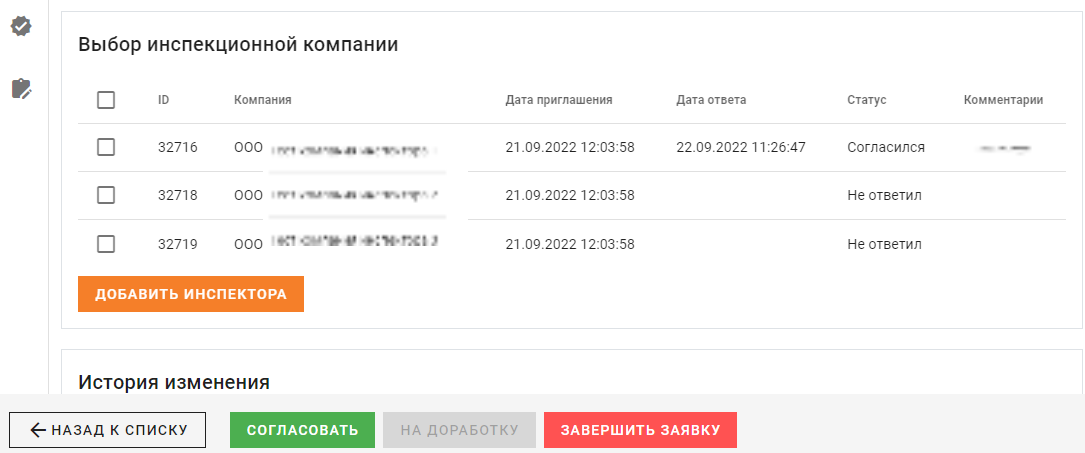 Каждый Инспектор может согласиться или отказаться участвовать, оставив комментарий (информацию, которая может повлиять на выбор его, как исполнителя).