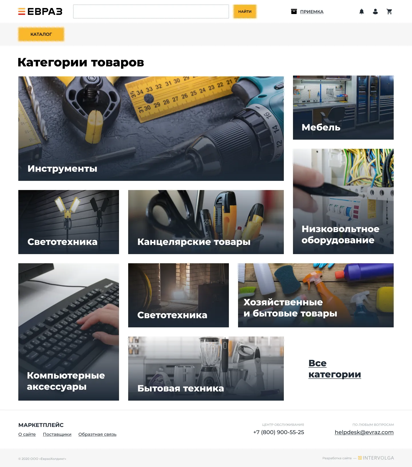В марте 2020 года нам предложили взяться за новый проект, необычный для ЕВРАЗа: разработать маркетплейс для закупок сотрудниками ТМЦ (товарно-материальных ценностей: канцтоваров, инструментов, офисной мебели, освещения и т.п.). Любой сотрудник смог бы оформить заказ на дрель или шлифовальный круг (в рамках бюджета на свой цех), проследить статус и получить в ближайшем складе на территории цеха. При этом сайт — только один кусочек пазла, за ним кроются серьезные управленческие решения.ЕВРАЗ поставил перед собой непростую задачу. Раньше, если инструмент или прибор ломался, заявка сотрудника на закупку выполнялась неделями. Нужно было уменьшить этот срок до 48 часов. Все согласования внутри ЕВРАЗа планировалось сделать на сайте и автоматически отправлять заявки поставщикам.