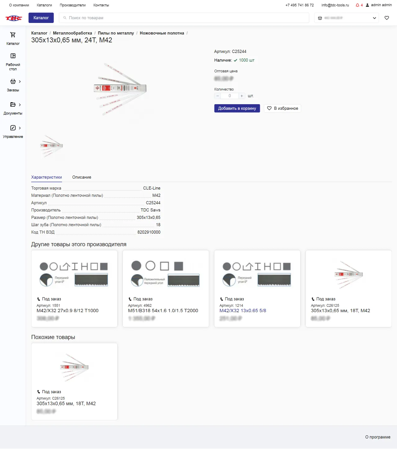 Каталог b2b-платформы производителя металлорежущего инструмента